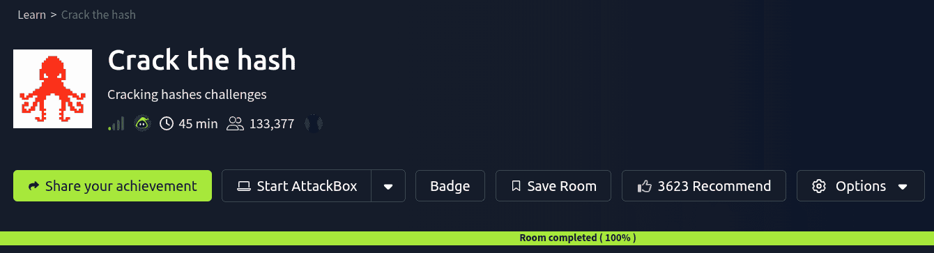Howdy my fellow Cyber Enthusiasts! Let's crack some hashes. This guide is for Linux users, these commands will not work for Windows. You can always use Attackbox from Try Hack Me, which will open a Linux Machine accessible from the web browser.